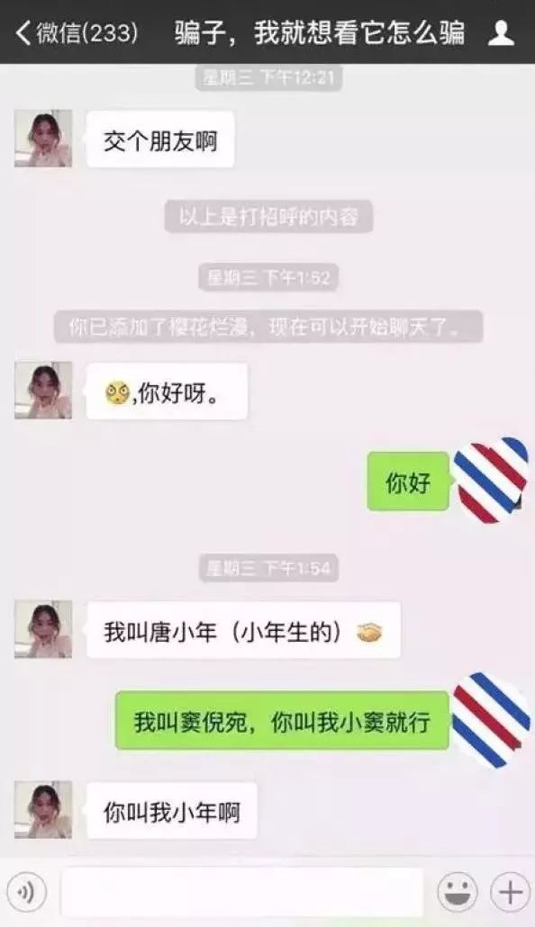 这些美女加你好友后,很多并不急于表明身份,而是一步一步慢慢引你入套,通常会和你聊一些情感话题,等接触一段时间后才下手。