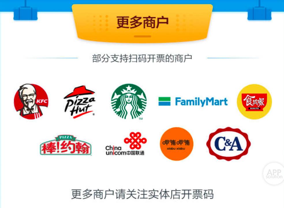值得一提的是,不是所有的购物小票都可以用支付宝开发票。支付宝也列出了支持扫码*票开**的商户。
