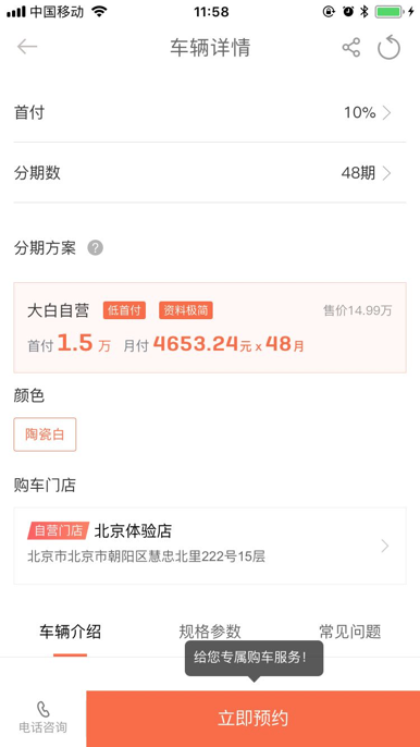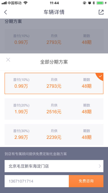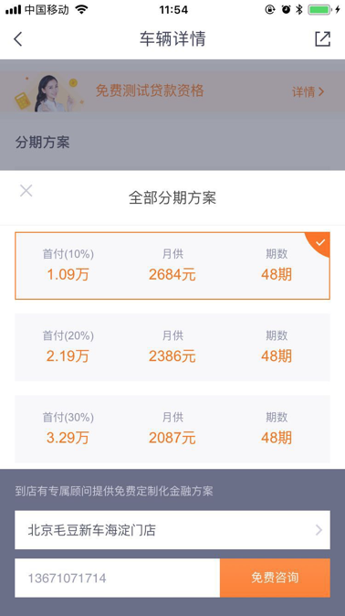 平台背景:毛豆新车与瓜子二手车同属车好多集团,获得工商银行、中国银行、招商银行三大银行投资公司战略投资,C轮融资由腾讯领投,并获得马云麾下云锋基金投资。大白汽车分期是互联网金融企业趣店子品牌;弹个车是大搜车推出的“一成首付,先用后买”的汽车融资租赁产品;花生好车成立于2015年,曾获得京东金融A轮战略投资。