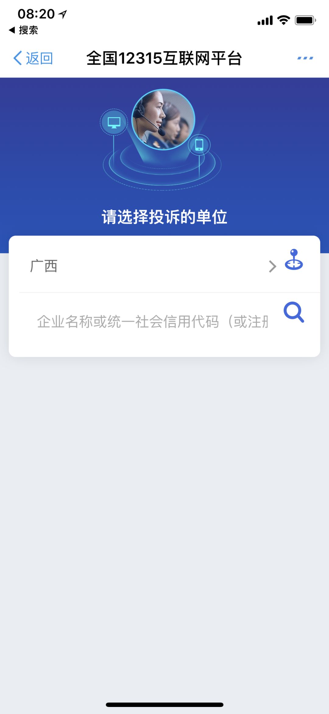 然后输入要投诉举报的公司名称