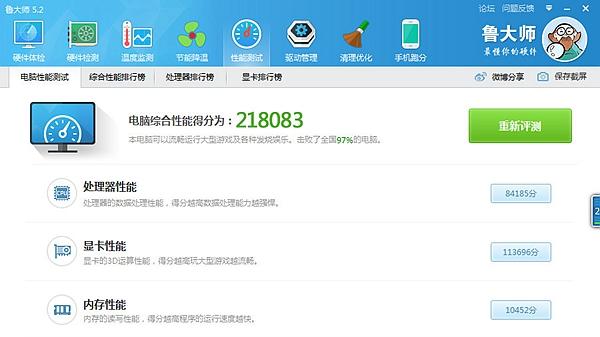 各种软件的安装费了我一下午时间,好在体验了一把吃鸡后,轻松过关,还是很有成就感的。经过这段时间的使用,针对主机及显示器的显示效果啥的没得说,也不懂什么专业软件的测试。就用鲁大师测试了一下,218083的综合得分,击败了97%的电脑,也算对得起这次的升级,下次有机会估计我这桌子也该换换了。