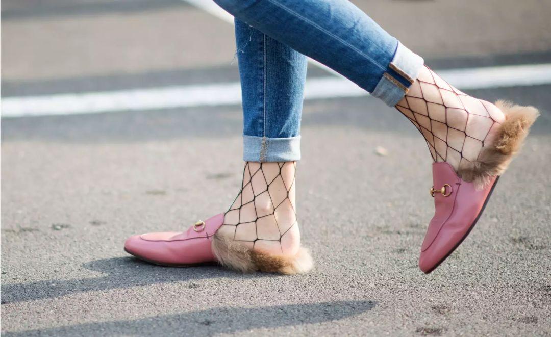 超级有质感的粉色拖鞋!五金和鞋面泛着光泽。偏深的粉色非常有气质,毛毛踩上去也是一如既往地软和舒适。还有一双不带毛的 Loafer 给人感觉简洁硬朗,可惜已经卖完了。
