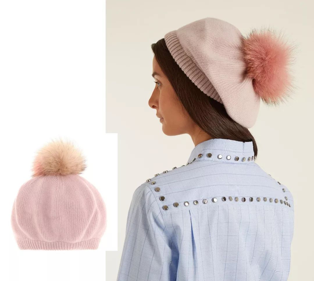 第一眼看到这顶 Miu Miu 的帽子就觉得太可爱了吧!但试戴过之后发现在设计上也有小巧思,以不同层次的粉色系混搭出艺术感,让五官更显深邃。手感也非常好,用料是羊绒与羊毛,贴身很亲肤。