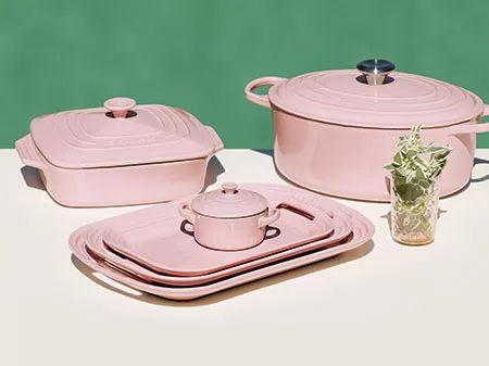 据 le Creuset 说全套粉色厨具的灵感来自中世纪。这份浪漫至死的情怀被生活冲淡些许,只留下小甜蜜,持续供应好心情。不仅有盘子和咖啡杯,连铸铁锅都有粉色,可以煎、烤、煮,把小心意完美包裹进食物里。
