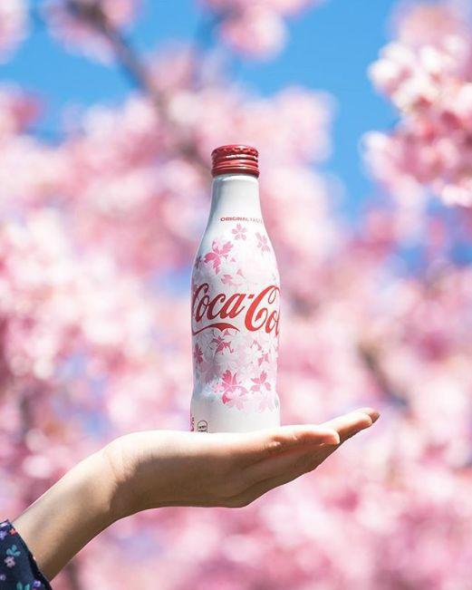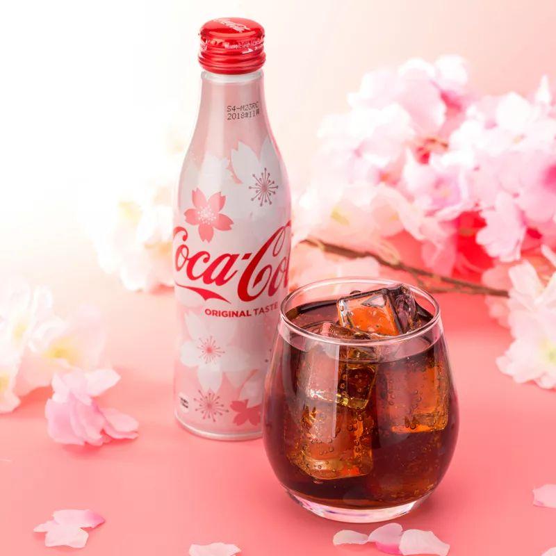铝制瓶身质感比普通瓶装好多了~瓶身由红色主题改为浅粉色调,印满了盛开的樱花花瓣,虽然里面还是普通的可乐,但这个外观忍不住让人想要抱回家!
