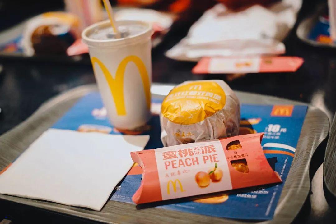 除了这些之外,麦当劳有一款少女感十足的蜜桃派,粉粉嫩嫩的,里面有很多蜜桃果肉,但味道有些偏甜。