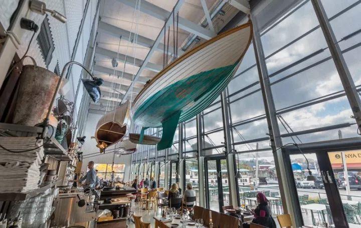 斯德哥尔摩有家米其林两星餐厅Oaxen Krog,它还有个亲民版本,叫Oaxen Slip。这家店最令人印象深刻的,还是那飘浮在空中彩色的小船。窗外是斯德哥尔摩群岛无敌的风景,头上有船,还真是有些魔幻的体验呢。在那里,食客可以不必那么正襟危坐地,品尝到Oaxen 出色的午餐,brunch和晚餐。