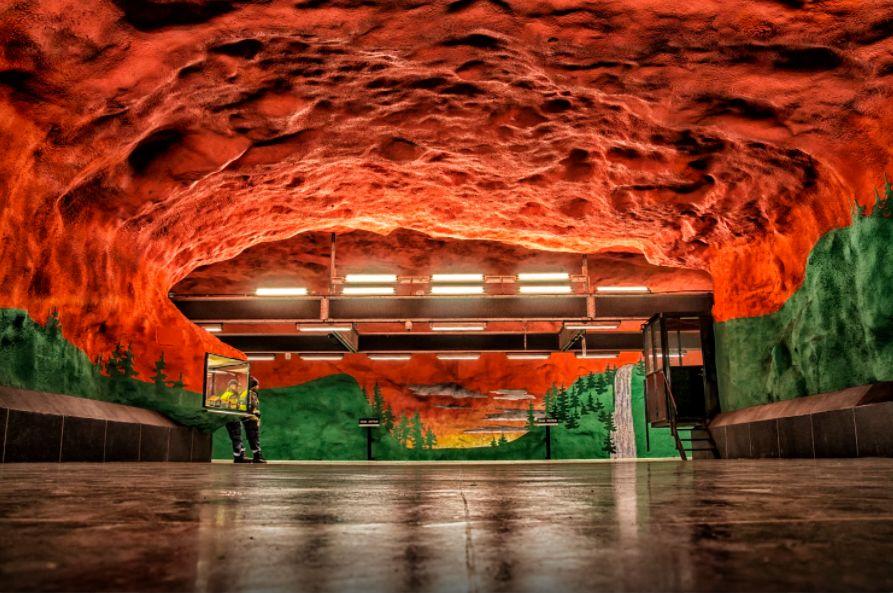 在斯德哥尔摩,你一定不会错过一座座流动的“地下美术馆”。在100个地铁站里,其中47个位于地下,而它们正是令人倍感兴趣的地方。来自世界各地的艺术家以雕塑、绘画、马赛克、浮雕和装置艺术等情势将斯德哥尔摩的地铁幻化成世界上最长的艺术画廊。