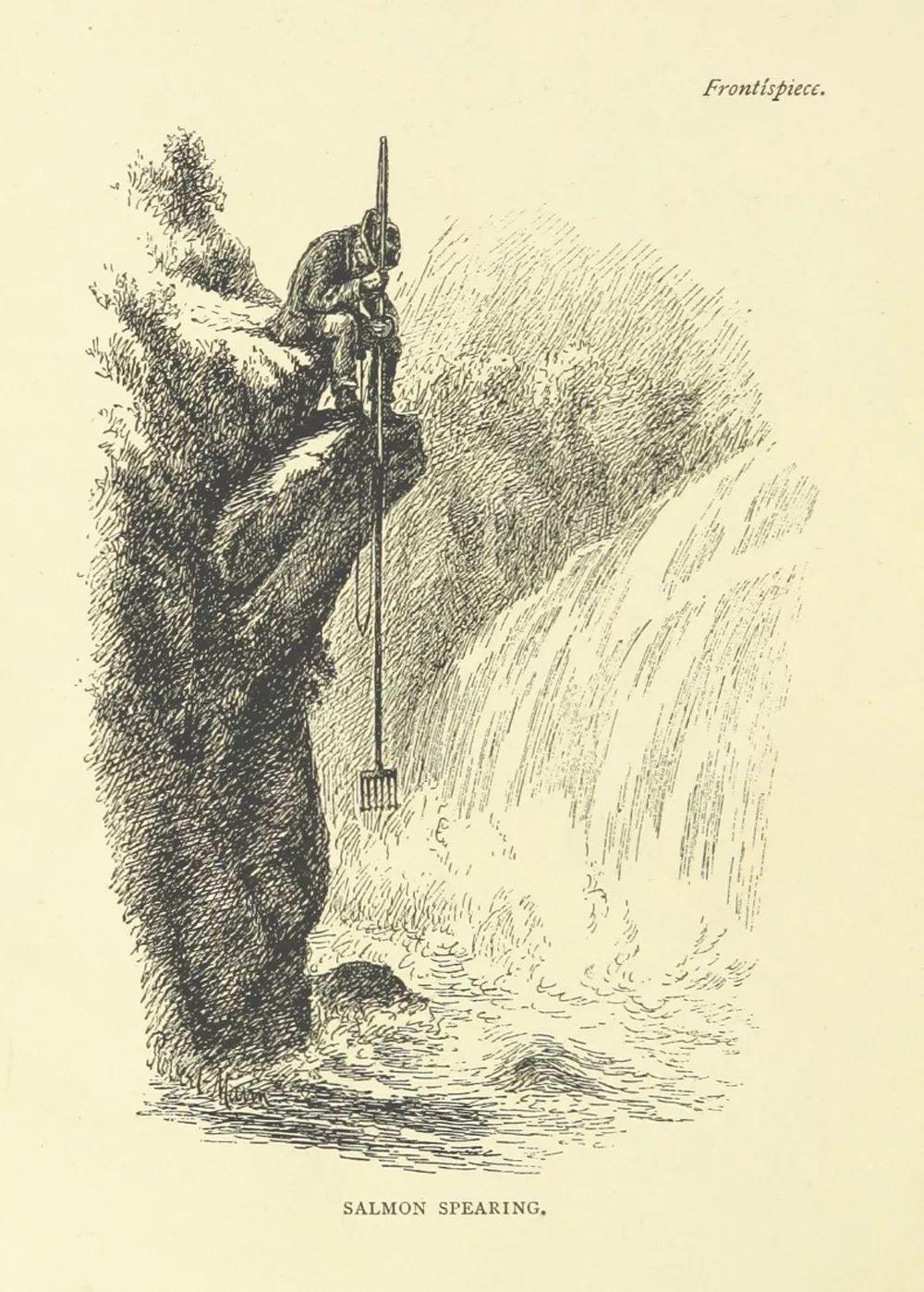 在海边捕捞三文鱼的生动场景。