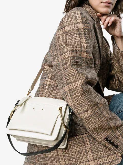 它借鉴了 Chloe 前几款包标志性的大圆环,不过是低调地藏在了包袋两侧,还有时髦的双肩带配置,可以单肩背,也能斜挎在身上。