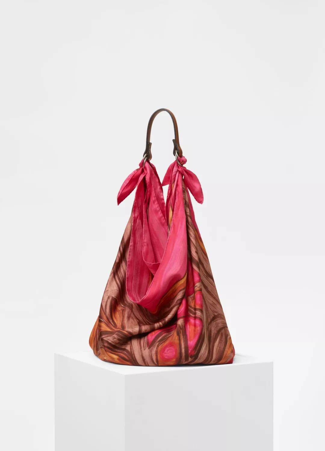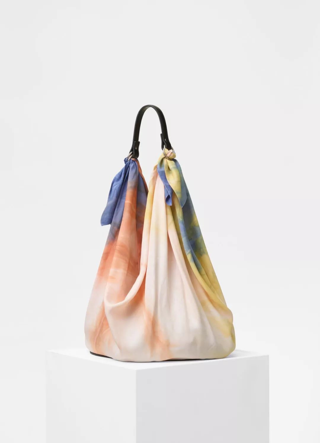 丝巾包的主体确实由一条 Celine 的斜纹丝巾制成,牛皮的手柄可以拆卸,你当然也可以把它变成一条真正的丝巾戴在脖子上——如果非要找出缺点,那就是丝绸的质地比皮包更加脆弱,打理起来也更费心思。