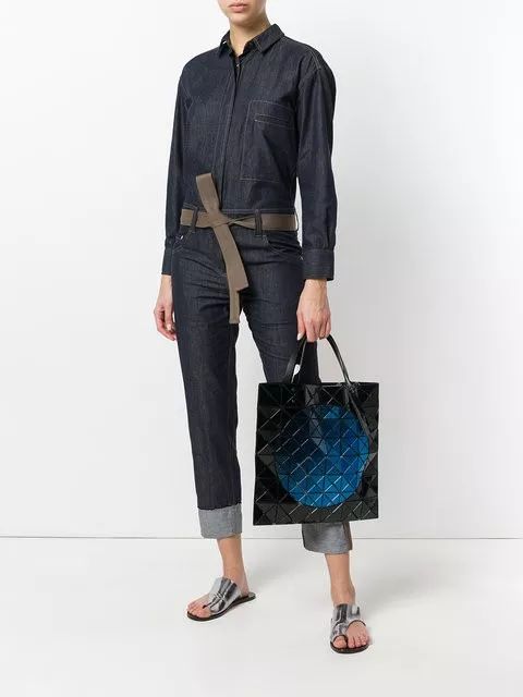 如果喜欢这个外形又不想撞包,三宅一生本季推出了红黄蓝三色渐变的黑色 BAO BAO,这三种颜色均以几何图形的情势显现在包上,大大减少撞包概率。