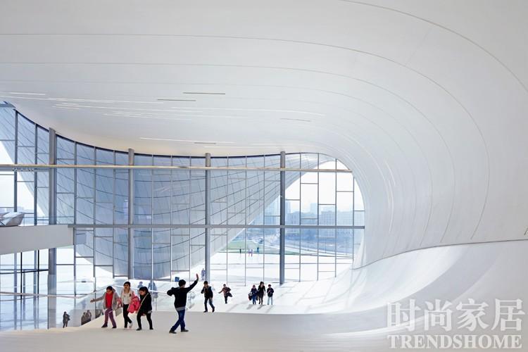 位于阿塞拜疆首都巴库的阿利耶夫文化中心,扎哈凭此设计获得2014 全英设计大奖年度最佳设计师。 地标女王 直到1997 年,由扎哈独立设计的位于美国辛辛那提州罗森塔尔的现代艺术中心破土动工,外界才慢慢开始接受她疯狂、诡异的设计风格。当时的 《纽约时报》 称这幢不同色块的像积木般的建筑为“田园绿洲”。 很难说是人们的好大喜功,还是设计本身夸张而极具个性的效果成就了扎哈。在以后的岁月里,经由哈迪德设计的庞大建筑遍布全球,海里升起的巨大“生物”阿布扎比演艺中心、轻轻地悬浮在几根不对称的锥形立柱上的德国沃尔夫斯堡的科学中心、面积达 3 万平米的罗马 MAXXI 现代艺术馆……这些都为她赢得了“地标女王”的称号。 而作为其第一次在中国亮相的广州歌剧院,两个巨大异型体结构就像被江水不断冲刷而成的两颗沙砾;又或是孩子们玩累了、置于一角的两堆沙土。“仿佛就是一个面团被随便捏了几下,然后放在烤炉里烤一下。”哈迪德在哥伦比亚大学的同事曾在课堂里向学生们这样介绍她的作品。 有人将扎哈的建筑比作“一头充满攻击性的猛兽”,彻底击破城市空间旧有的沉闷格局。就连普利兹克的评审,也将扎哈一路走来的设计风格描述为“残酷而无情”。待人们认识到这些碎片和城市的脉络有着内在的深层联系时,才明白扎哈是把城市作为充满活力的复杂体加以研究。