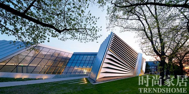 美国密歇根州立大学的Eli and Edythe Broad 艺术博物馆,一反扎哈的设计常态,与周围传统的哥特式建筑形成了鲜明对比。