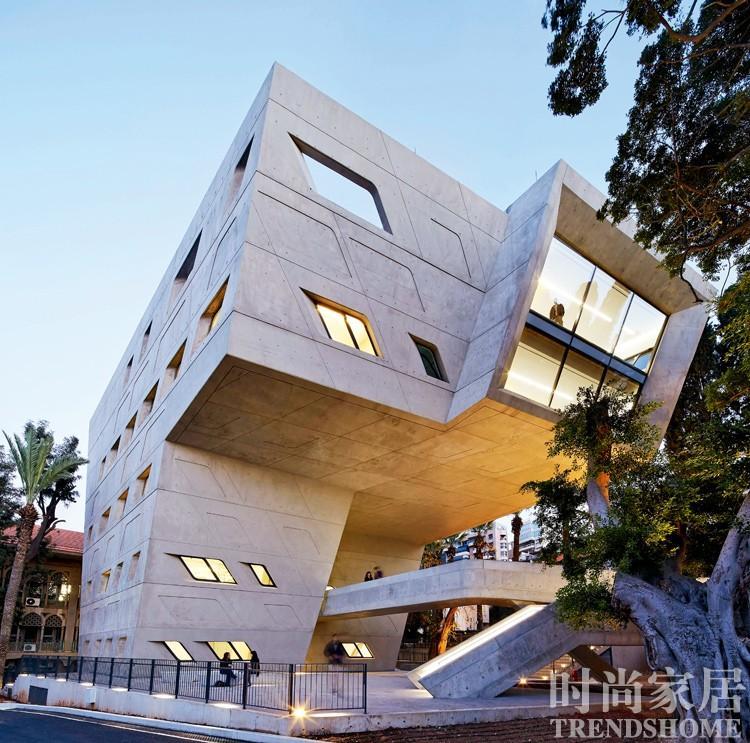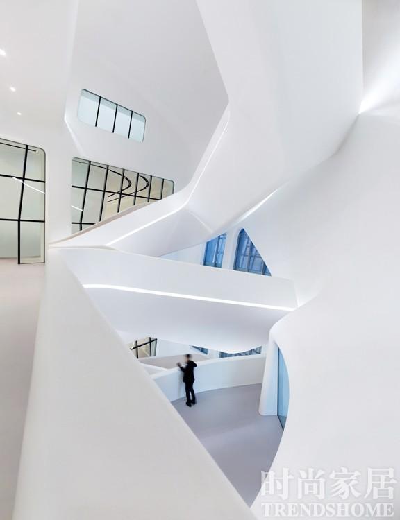 如果单从外观上,很难发现整个建筑主体完全嵌入山中。 伦敦建筑圈的局外人 扎哈在商业上的成功与中国、中东地区这些“世界建筑试验田”的崛起有着紧密的联系,这一点,就连扎哈本人也不否认,“中国的潜在项目真是太多了,非常令人兴奋。” 广州是扎哈作品在中国的第一个落脚点,但她与中国的渊源却可追溯至上世纪80 年代。1983 年位于香港太平山顶的the PeakClub 进行国际设计公开竞标,仍是英国AA 建筑联盟学院讲师的扎哈带领着一帮学生参与了这场赛事。当方案最终展出时,那些仿佛尖刀般刺向山崖的锐角三角形和长弧曲线,给人们带来前所未有的压倒性视觉冲击力。整幢建筑仿佛炸裂开的碎片般在城市上空飞起,离经叛道的设计在第一轮便被淘汰。好在来自日本的建筑大师矶崎新独具慧眼,最终扎哈摘得头筹,也凭着比赛所获得的奖金,在伦敦开设了名下的第一间事务所。