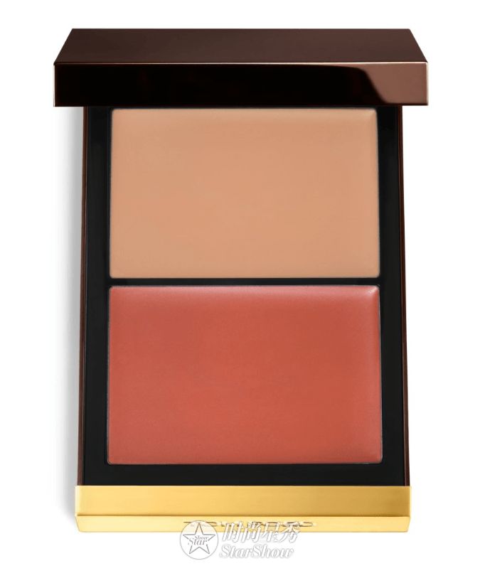 TOM FORD幻魅塑颜腮红膏共两色,色彩明艳亦纯粹自然。这款腮红膏由色泽不同的两个色块组合而成,魅惑演绎光与影的游戏,堪称TOM FORD美妆哲学之典范。易于推开的双色膏体可轻松打造出轮廓鲜明的立体妆容。浅色膏体可于提亮双颊上方靠近眼部的位置,而深色膏体则用于深化面部线条,并为双颊增加红润气色。双色搭配晕染,打造立体而富有层次感的惊艳妆效。两种色彩组合均适合多种肤色,配合TOM FORD廓型刷与粉霜刷,更可使妆容自然无痕。
