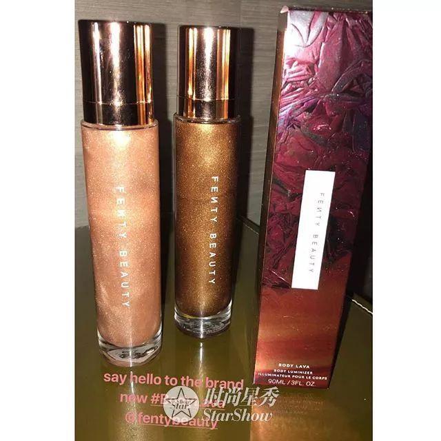 主打产品亮肤乳名为“Body Lava”,意思是“身体火山(岩浆)”,涂抹后自带非凡的闪光效果,就像是身体的高光。蕾哈娜称“有了它谁还需要穿衣服”,还说自己已经快用完一瓶了。Fenty新品将于4月6日全线发售。