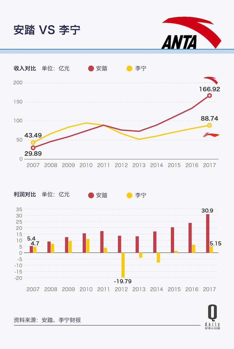 与此同时更早起步的李宁打算升级自己的品牌,和耐克、阿迪达斯争夺中高端体育用品市场。