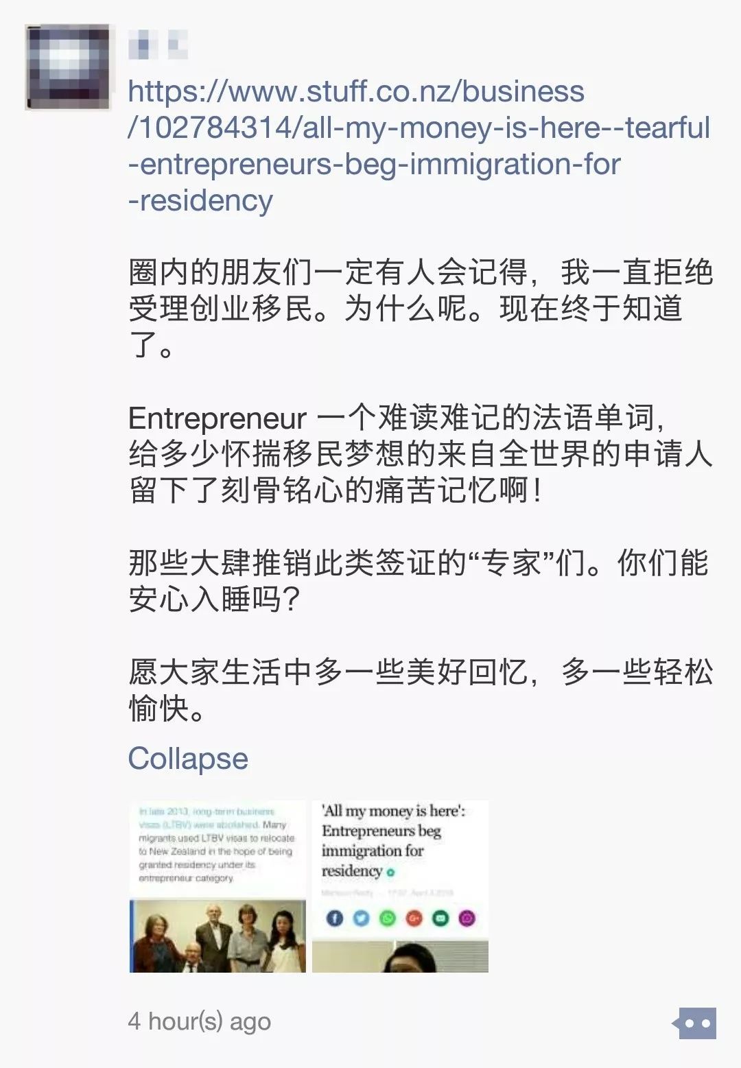 一位不愿透入姓名的新西兰移民持牌顾问也表达了类似的观点,他认为目前市场上某些移民中介昧着良心为了赚黑钱,导致了创业移民申请者的悲剧。