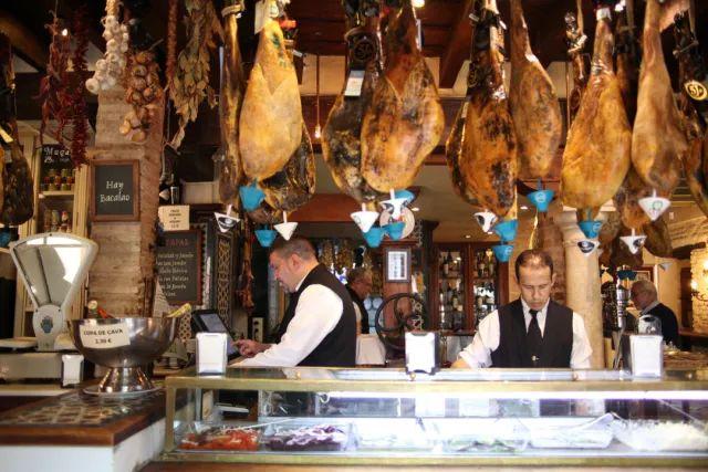 去过西班牙都会知道,最local的风景是挂满油亮火腿的小酒馆。走在路上不用抬头,只要闻到芬芳咸香,就知火腿靠近了。