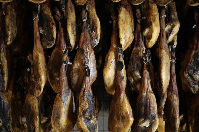 全世界再没有一个地方,有西班牙这样壮观的火腿森林。酒店、饭店、街市、人家……到处悬挂的火腿几乎像是种图腾崇拜;无论亲朋宴客,还是婚礼喜酒,也无论王子还是贫儿,第一道头盘一定是一碟手工现切火腿。