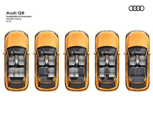 Q8的后排座椅支持比例放倒,放倒后行李厢空间可扩充至1755L。此外,新车还标配电动行李厢开启功能。
