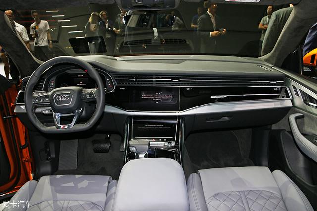 内饰部分,奥迪Q8使用了目前的家族最新设计,与A8非常相似,整个车厢内部很难找到物理按键,看起来十分简约、富有科技感。