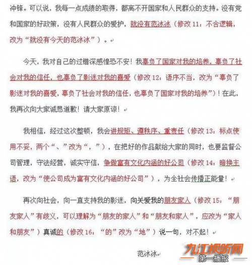 国庆期间,范冰冰“阴阳合同”案有了结果——她被责令按期缴纳税款、滞纳金、罚款8亿余元,还在微博上就此事发布了致歉信。没想到节后这封致歉信火了,竟被杭州一位高中语文老师当作改错例题带进课堂!