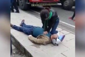 贵州普安县一名男子晕倒,护士胡漫见状马上跪地做心肺复苏,持续40分钟,按压上千次。