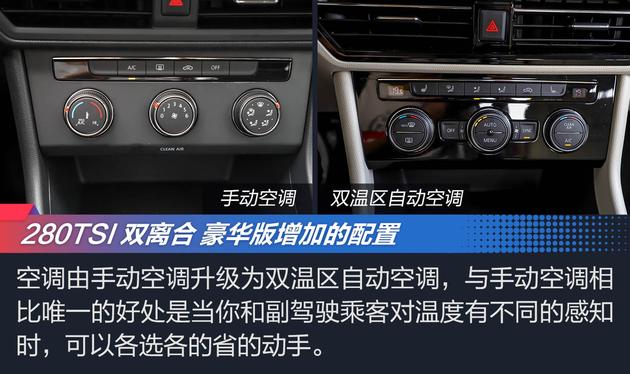 280TSI 双离合舒适版对比280TSI 双离合豪华版(差价1.3万元)