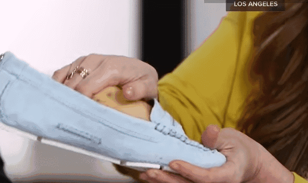 然后把袜子放到鞋里,直到鞋子完全被塞满,一晚之后鞋子就会变大啦。