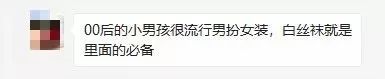 “00后的小男孩很流行男扮女装,白*袜丝**就是里面的必备。”