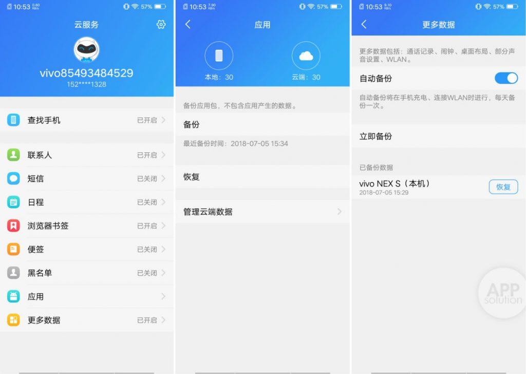 不过在 vivo 的云服务中,我们可以将联系人、短信、日程、浏览器书签、便签、黑名单、应用(不包含其数据)上传到云端,自动备份的周期为 1 天 1 次。而由于 vivo 没有扩容空间的选项,因此我们也看作是无限量上传,简单试了一下,传输速度还不错。