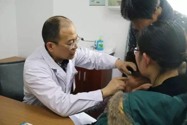 周海峰(左)在为病人做检查