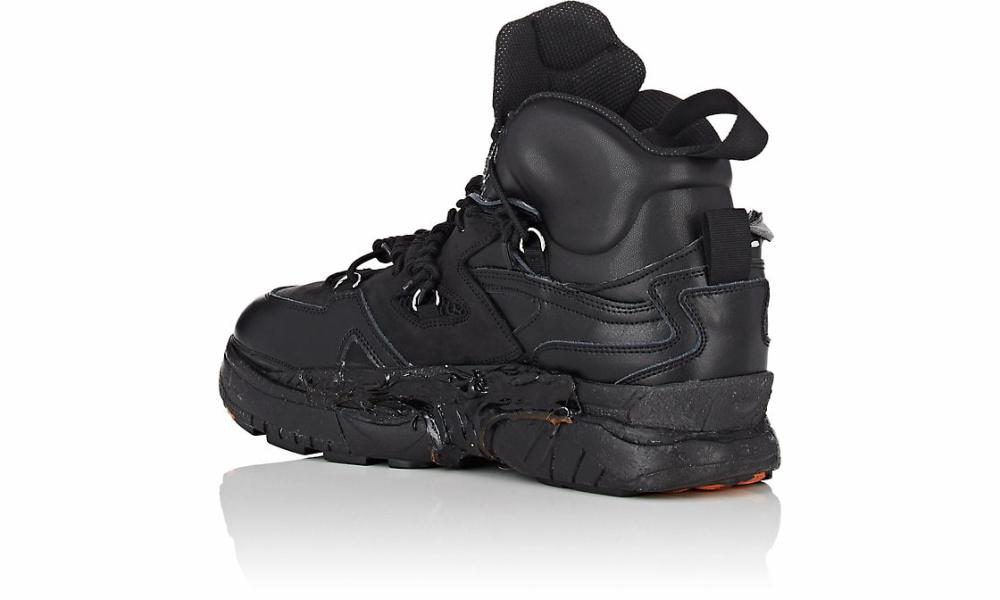 解构风又刮了起来。Maison Margiele也再次推出了一款名为Fusion Sneakerboot的“烂鞋”。鞋子的鞋身以皮革和网格混合而成,层次丰富,团状鞋带搭配橡胶鞋底构成了独特的高帮靴样式。虽然售价1780美元,但尺码已经不全,心动的朋友下单要趁早。