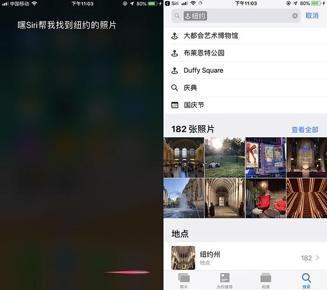 不想动手,直接用Siri搜索你想要回忆的照片,几乎是瞬间跳转。