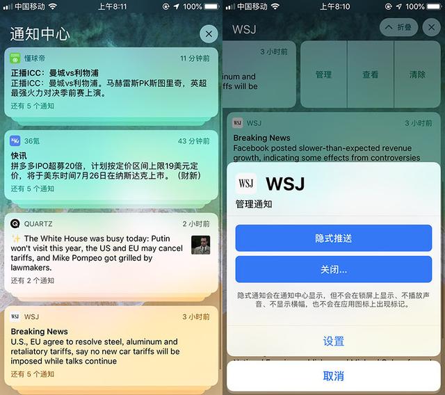 iOS 12可以按主题将信息和通知分组,看上去更简洁有序,随时在桌面进行管理。