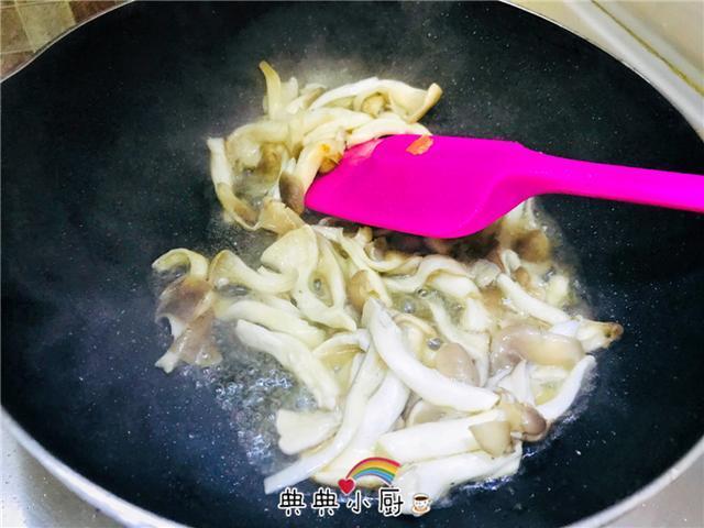 3,猪肝稍微炒制一会装起来,另起油锅把蘑菇再炒制变软。我有个习惯烧汤的时候,一些食材我习惯性的先过下油,不需在太多油,但是过油之后再烧汤,口感就会好很多。您也可以对比烧几次就知道了。