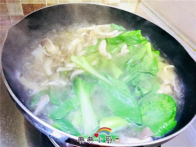 5,水烧开后,放入小白菜,稍微煮一会,加一点胡椒粉,最后加盐提味即可出锅啦!