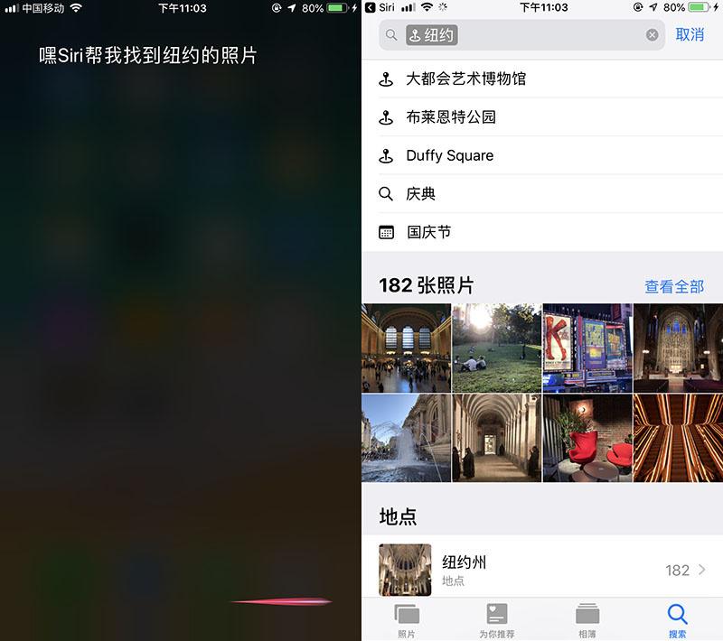 不想动手,直接用Siri搜索你想要回忆的照片,几乎是瞬间跳转。