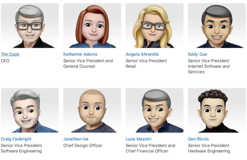 事实上,就在前不长,为了庆祝世界表情符号日,苹果官网高管们的照片清一色换成了Memoji定制表情。
