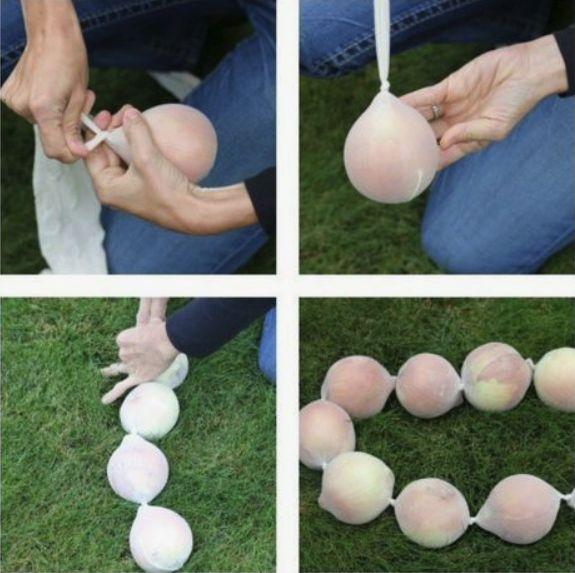 将洋葱和大蒜放入长统*袜丝**的袜筒中