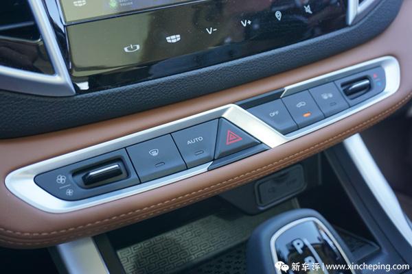 另外一个比较明显的变化,就是中控按钮的布局。之前首试时候庆哥提到,改款前的远景SUV有个商榷地方就是空调面板太靠下,不便于操作。改款后,空调控制区域往上提,放在多媒体屏幕的下方,取代了原来的多媒体音量、选曲等按钮。多媒体的操作现在全部做成触控式,虚拟按键隐藏在中控屏幕下方,虽然以前实体按钮会更便于盲操,可考虑到按钮太多侵占太多空间,改款后布局无疑更高效,这样取舍我是赞同的。