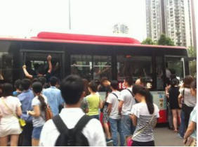 ●承担航空港人民进城的91路公交,挤上去都要在出门前求神拜佛;