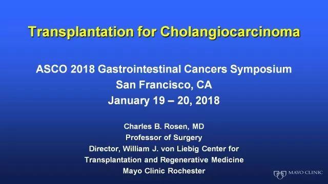 2018年ASCO GI已经结束两个月余了,作为内科医生,通常我们关注的是前瞻性的药物临床研究结果以及是否有新的分子分型和针对某个特殊基因突变的靶向药物。但是,对我来说这个会议还有一大收获是来自Mayo Clinic移植中心Rosen教授关于胆管细胞癌肝移植的讲座。
