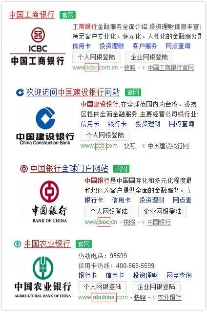 而几大银行则钟情于用英文名缩写作为网址(考验大家英语水平的时候到了)↓