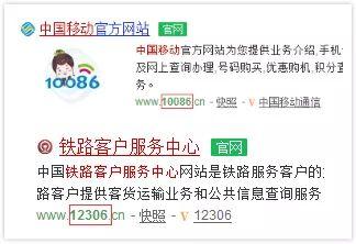 中国移动、铁路订票网站则采用了大家更为熟知的客服电话作为网址↓