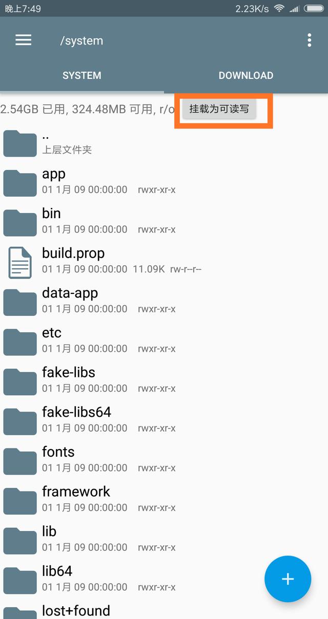 看到没,点击挂载为可读写之后,变为挂载为只读,说明现在已经是可读写态势,也就是解锁系统分区成功。