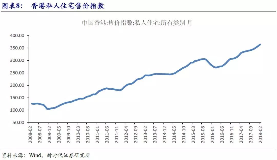 尽管香港政府不断加码房地产措施,但是宽松的流动性、低廉的资金价格使房价不断上升。2月香港私人住宅售价指数为364.1,已连续上升23个月,再创历史新高。Demographia的《2017年国际房价负担能力报告》将香港评为房价最难负担的地区之首,香港地区房价中位值是普通家庭年收入中位值的18.1倍。香港金管局出手干预汇率,势必抬升市场利率,进而抑制房价,防止房地产泡沫越吹越大。