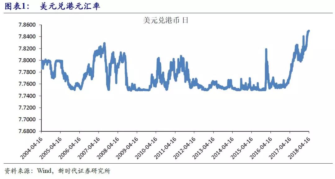 自2017年以来,港元兑美元持续面临贬值压力,2018年2月下旬至今,港元汇率贬值速度加快,港元进入30年以来低位。4月12日,港元兑美元一度跌破7.85创33年低位,正式触发弱方兑换保证价位。为维护联系汇率(货币局)制度,香港金管局于4月12日、4月13日连续两日分三次出手买入62.96亿港元。这是自2005年5月香港金管局推出强弱方兑换保证区间以来,港元首次触发弱方兑换保证机制。那么本轮港币贬值的成因是什么?有什么影响?后期走势如何?